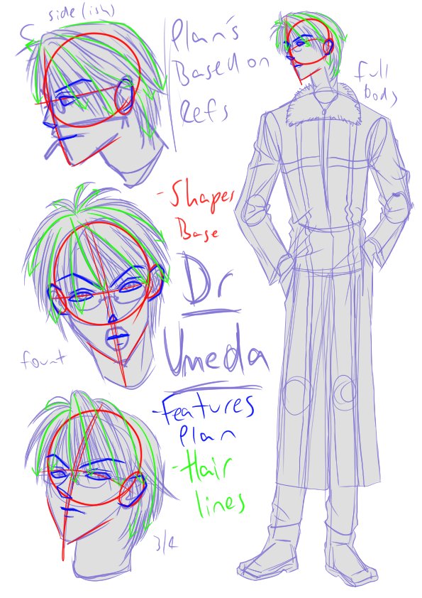 I saw this character who was funny and understandable called Dr Umeda. I wanted to style how they created/planned the characters face. So, here is my study